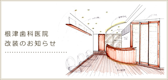 このたび根津歯科医院では医院の内・外装を改装させていただく運びとなりました。 間取りは大幅に変更し、各ユニットはパーテーションとドアを付けて区切ります。そしてオペ室やカウンセリングルームも完備し、今以上にきめの細かい診療がしやすい環境にいたします。 また、外にかかっているサインも一新し、合わせてフルリニューアルいたします。 新しい根津歯科医院に、どうぞご期待ください。 つきましては、H21年8月9日(日)〜8月27日(木)の期間、 休診とさせていただきます。 ご不便をお掛けいたしますが、 何卒、ご了承くださいますようお願い申し上げます。